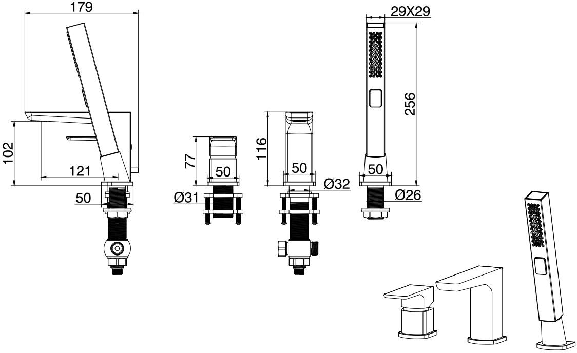 Смеситель на борт ванны Allen Brau Infinity, черный, 5.21008-31
