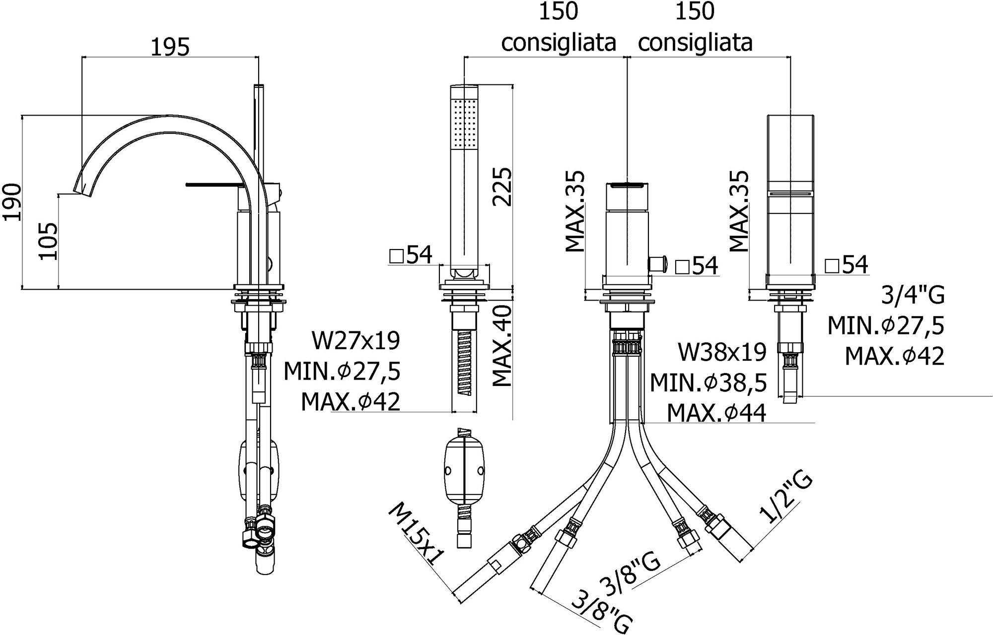 Смеситель на борт ванны Paffoni Tango, хром, TA040CR