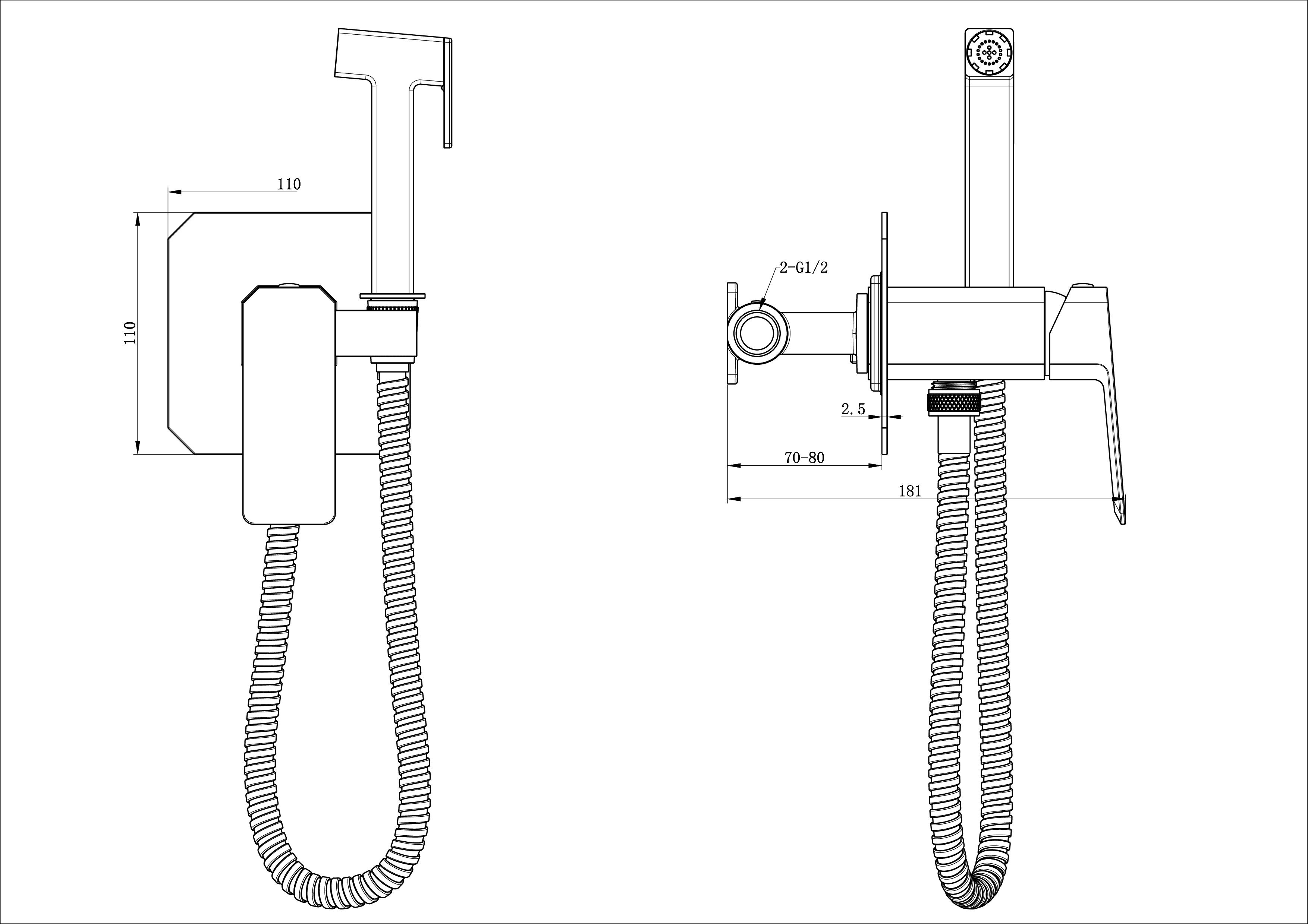 Смеситель с гигиеническим душем Wonzon & Woghand DIAMOND, черный, WW-88829011-MB