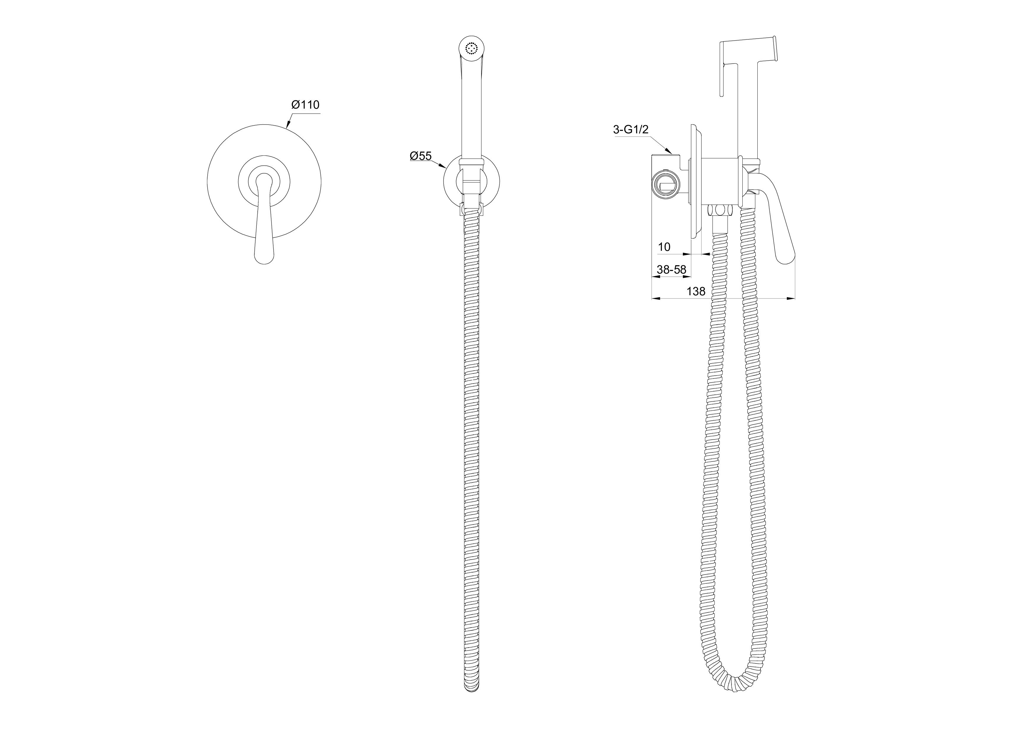 Смеситель с гигиеническим душем Wonzon & Woghand STEAM, темный графит, WW-88849008-BGM