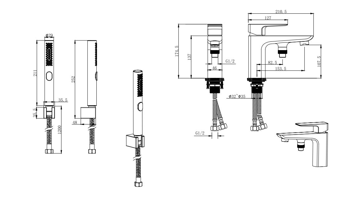 Размер ручного душа 21,1*3,55