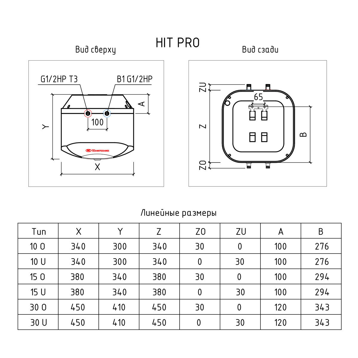 Водонагреватель накопительный Thermex Hit Pro, 5 л, 111099