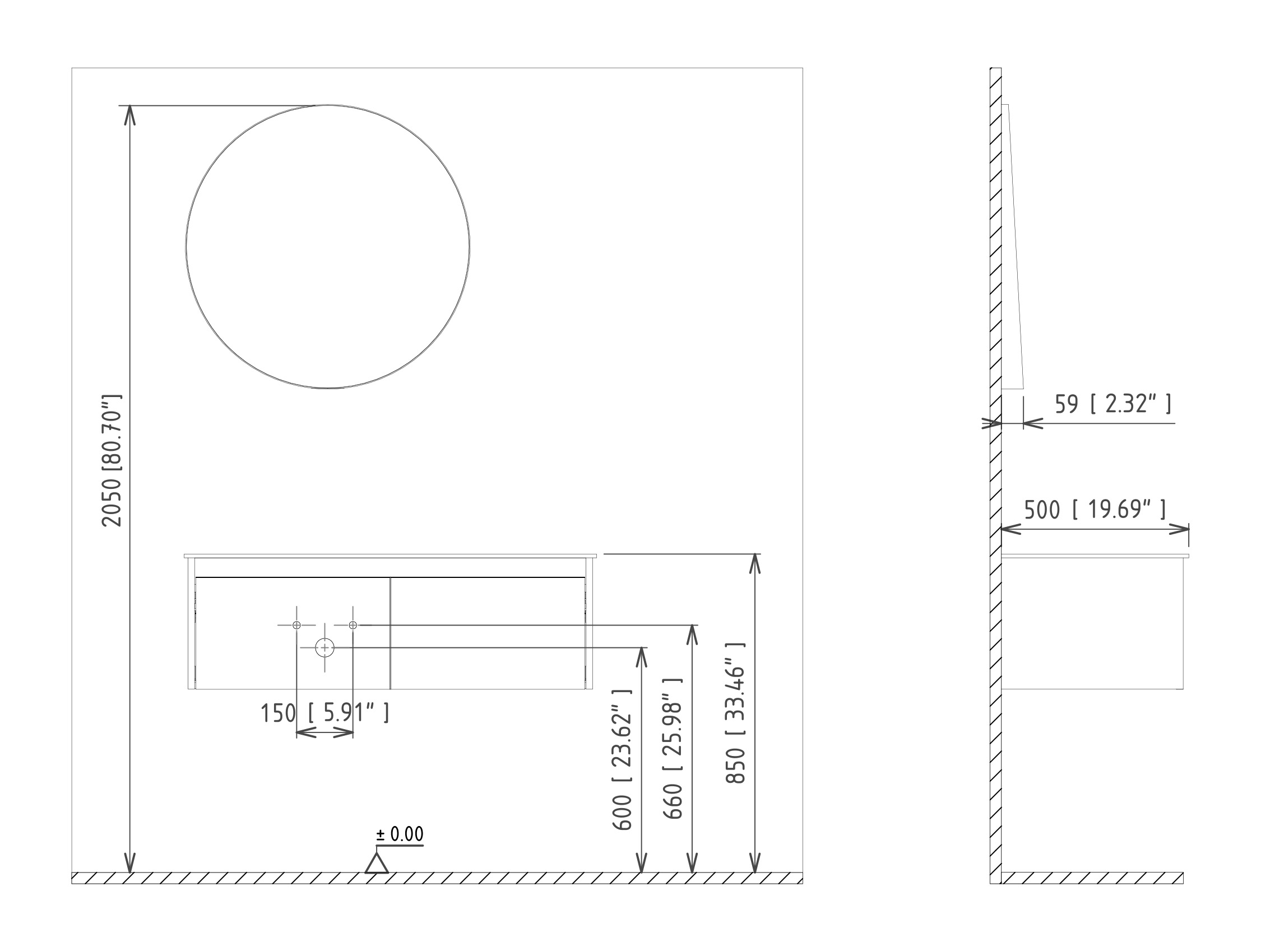Тип установки тумбы Подвесная