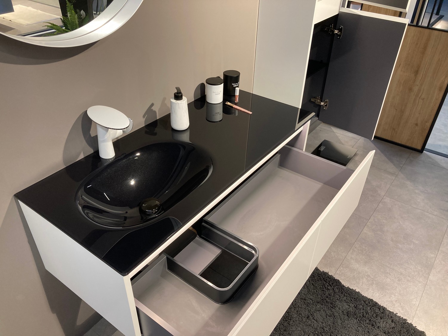 Деревянные ящики HETTICH c яркой LED подсветкой, нагрузка до 30 кг. Ящики открываются на всю длину, предоставляя полный доступ ко всему содержимому. Механизм плавного закрытия ящика предотвращает проблемы от слишком быстрого закрывания. Долгосрочное использование ящиков с высококачественными направляющими.
