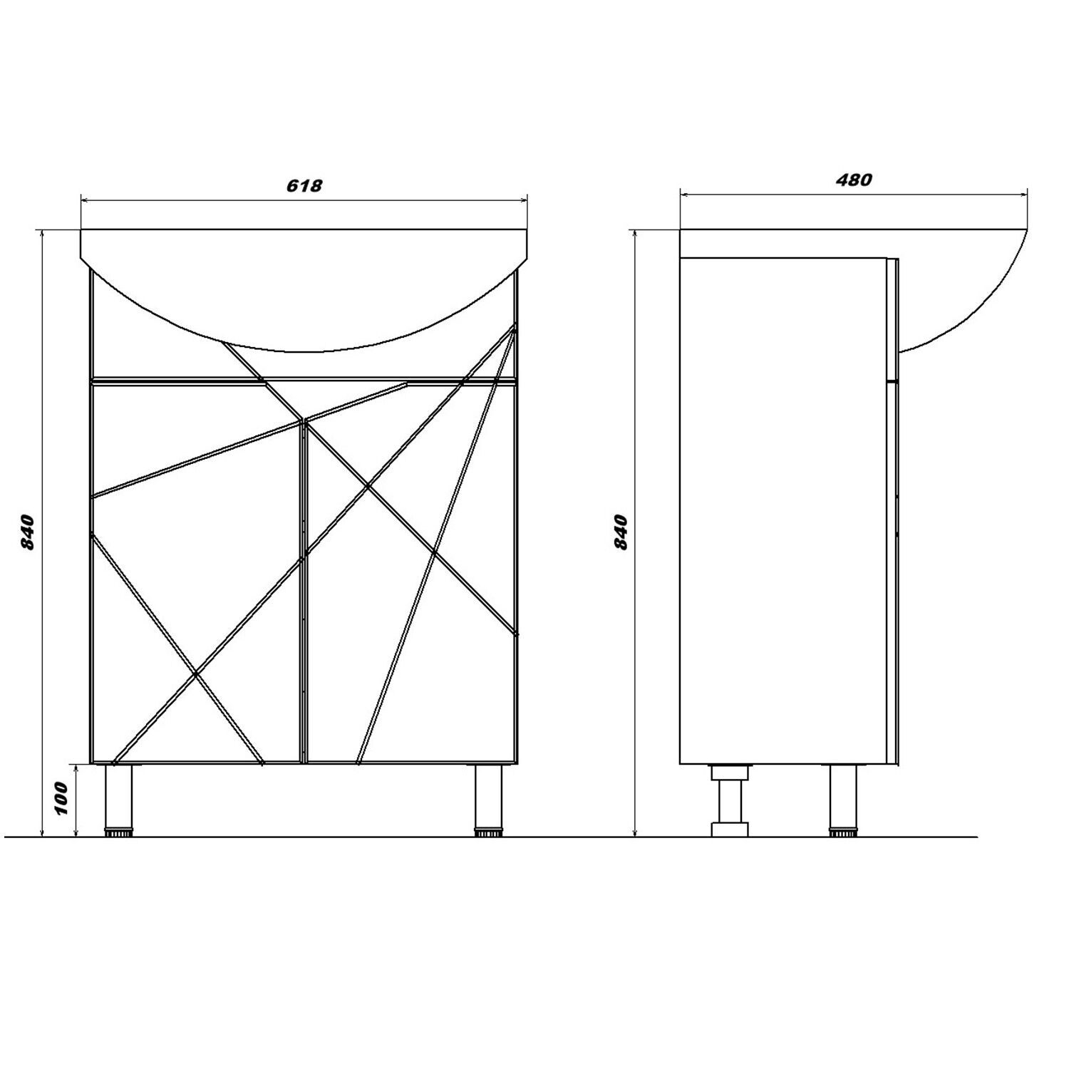 В комплекте Тумба, раковина, 3 ножки (2 передние хром, 1 задняя пластик), крепление к стене, фурнитура, паспорт
