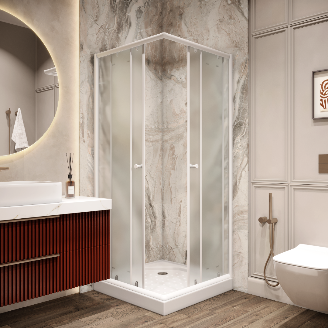Уголок ZFQ81 душевой PARLY с поддоном (80х80х190) Размер: 80х80х190 см Стильный уголок дополнит современное оформление ванной комнаты. Матовое стекло не боится перепадов температуры и влажности, поэтому модель не теряет эстетики на протяжении всего пользования. Достоинства: Поддон белый из ABS-пластика, квадратный, с бортиком по периметру; Стекла закаленные, матовые, толщиной 4 мм; Профиля белые, алюминиевые; Ролики одинарные, белые; Ручка пластиковая, круглая, в цвет профиля; Уплотнитель дверей магнитный, под 45°, в цвет профиля, с мягким закрытием. Внимание! Производитель оставляет за собой право вносить изменения в конструкцию и комплектацию моделей без предварительного уведомления!