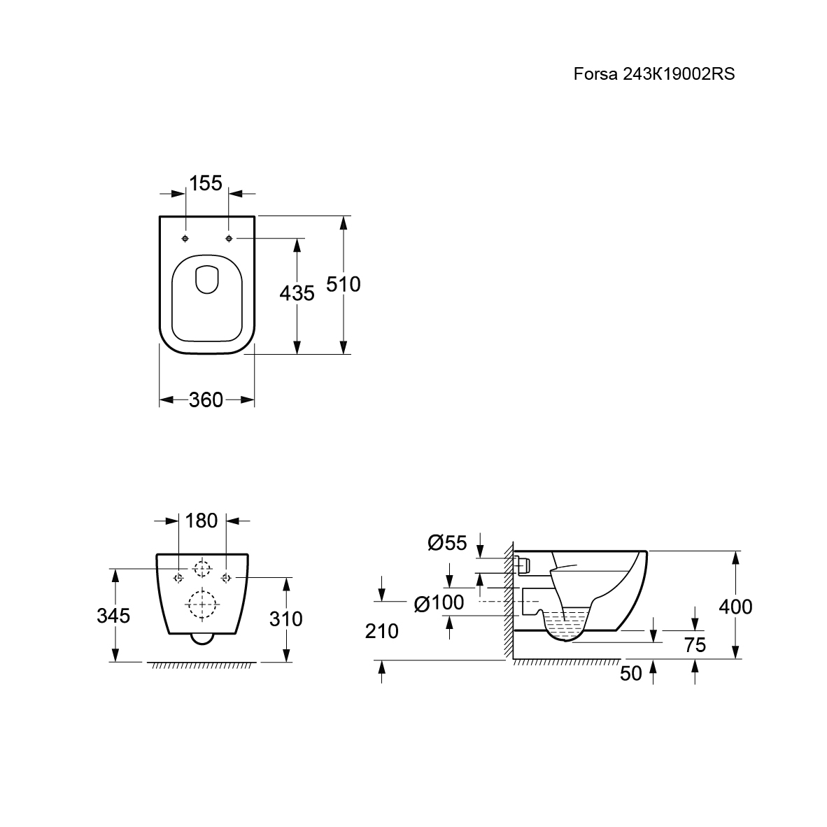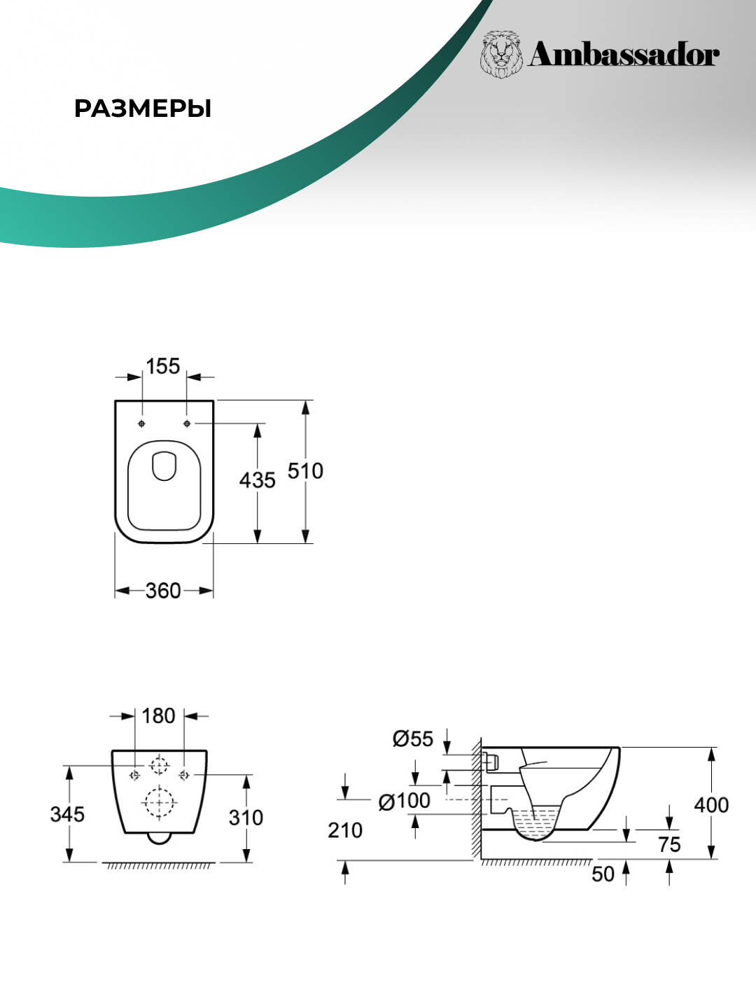 Унитаз безободковый Ambassador Forsa, подвесной, 243K19002RS