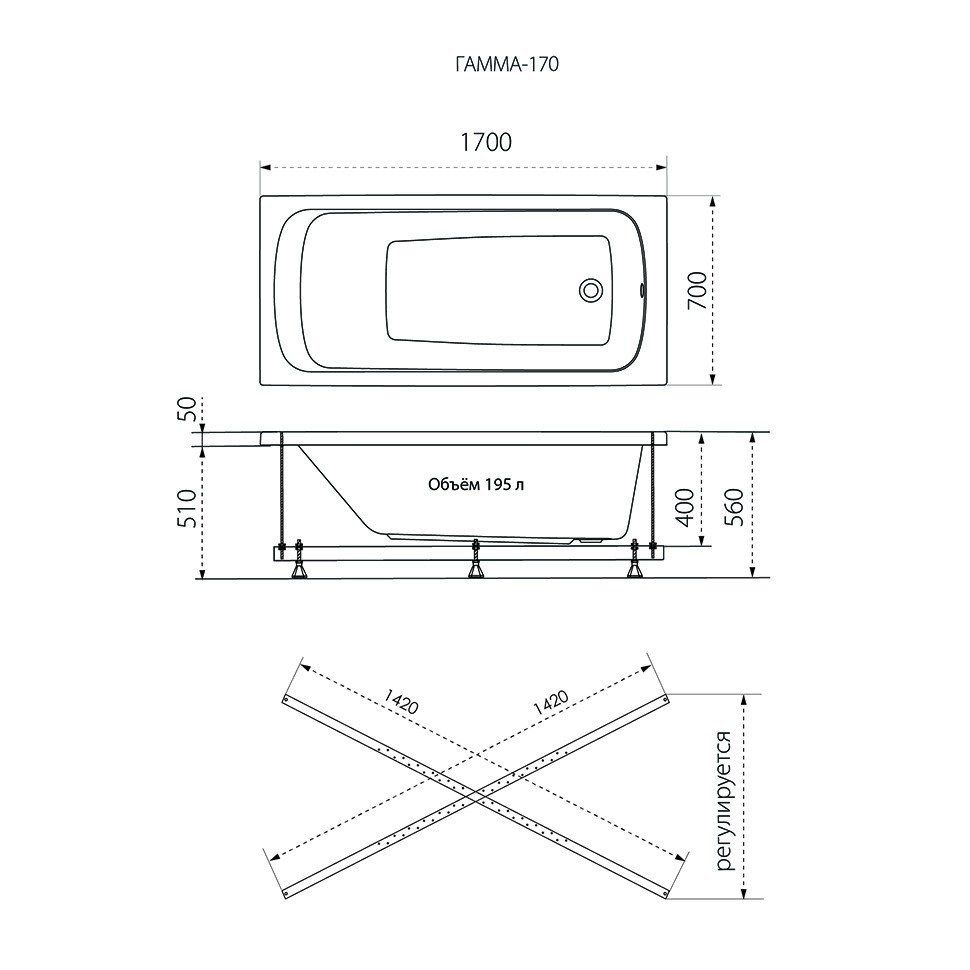 Ванна 1ACreal Gamma Стандарт, 170х70, Щ0000023532
