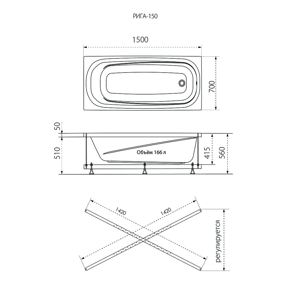 Ванна 1ACreal Riga Стандарт, 150х70, Щ0000040945