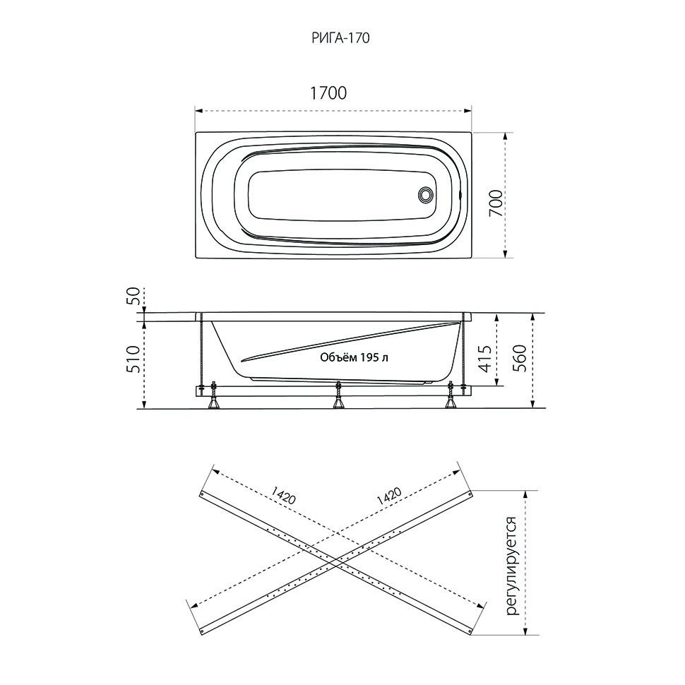 Ванна 1ACreal Riga Стандарт, 170х70, Щ0000040946