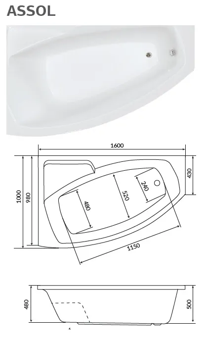 Ванна 1Marka Assol, 160х100, 01асс1610л