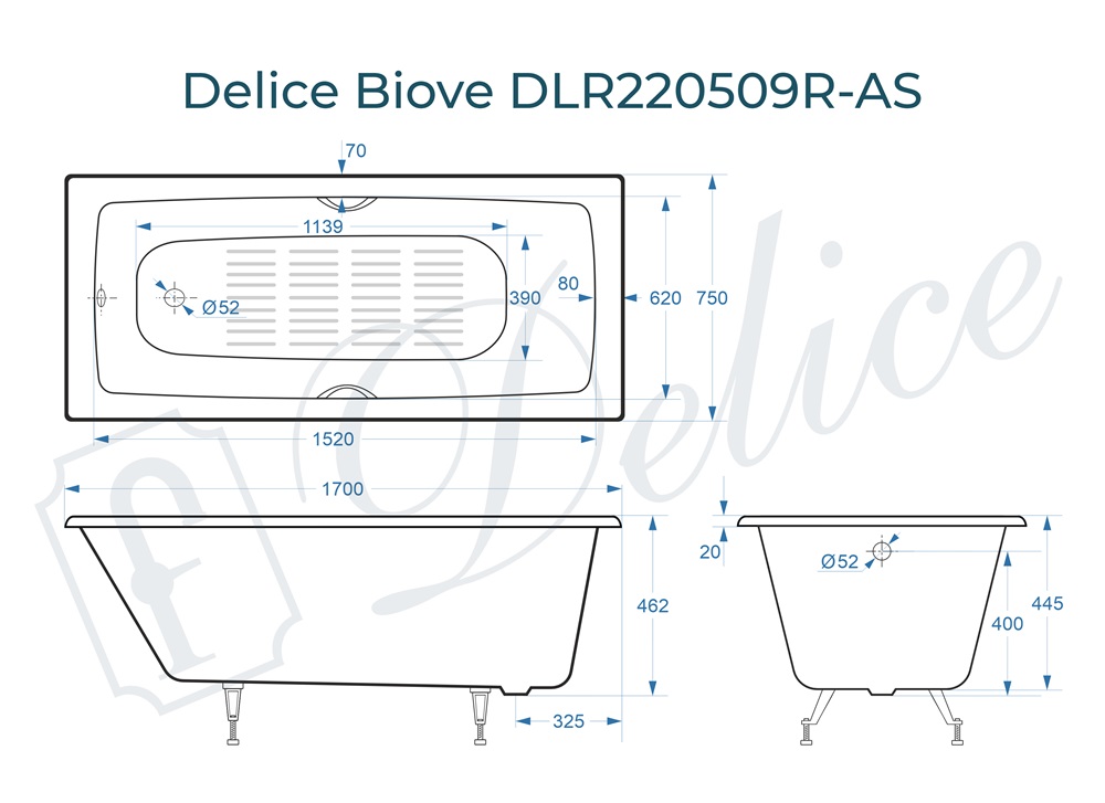 Ванна Delice Biove, 170х75, DLR220509RB-AS