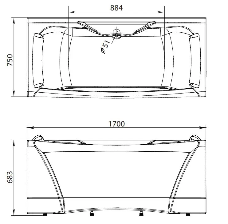 - слив посередине купели - возможность комфортного принятия ванны для 2 человек;