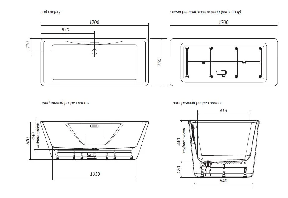 Тип установки ванны Отдельностоящая