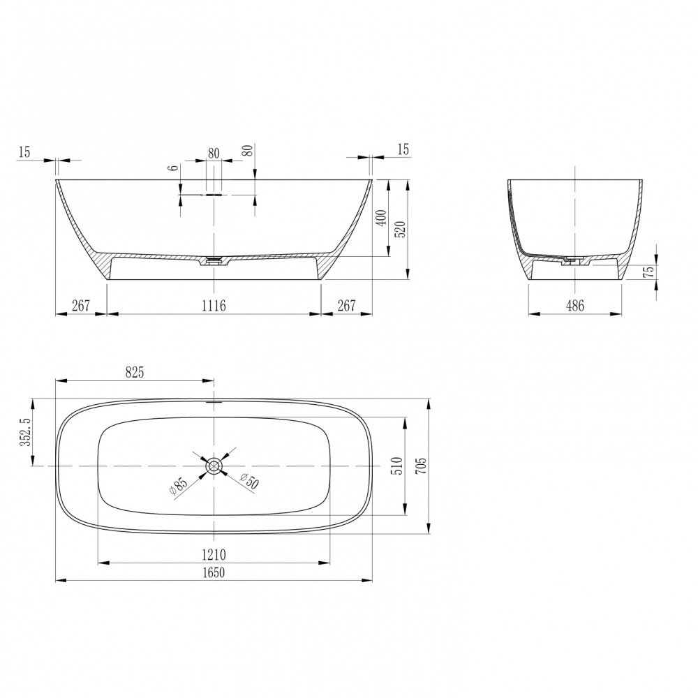 Тип установки ванны Отдельностоящая