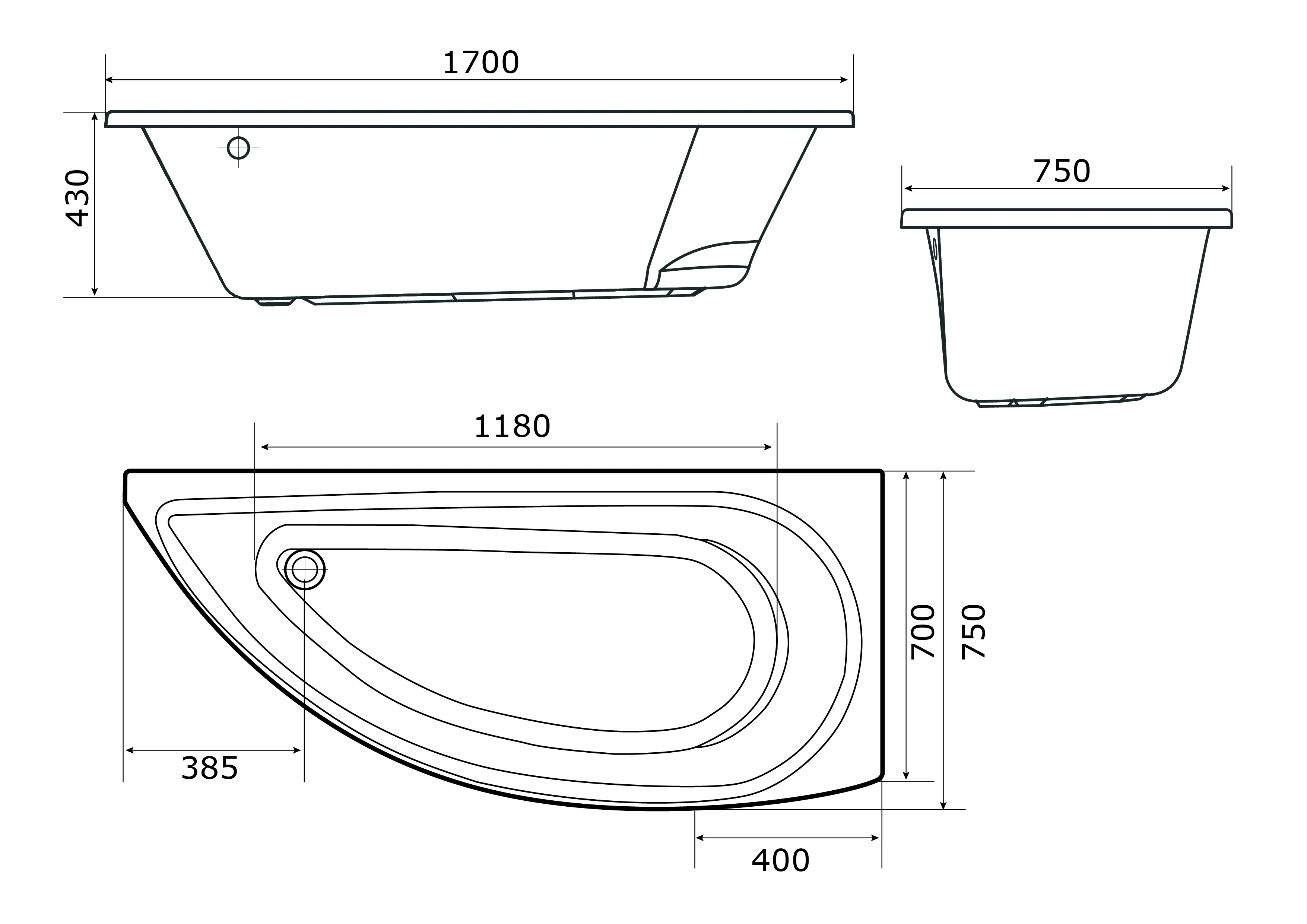 Форма ванны Асимметричная