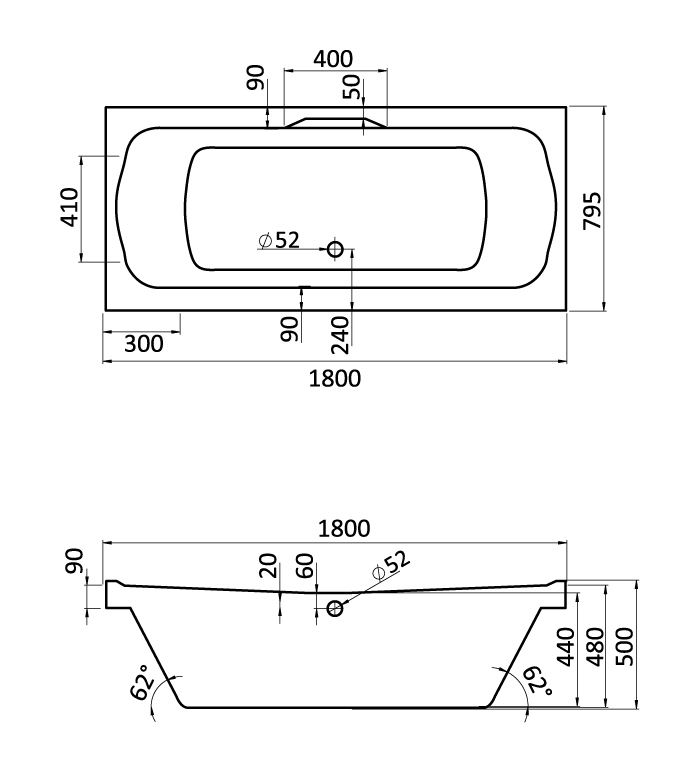 Тип установки ванны Встраиваемая и пристенная