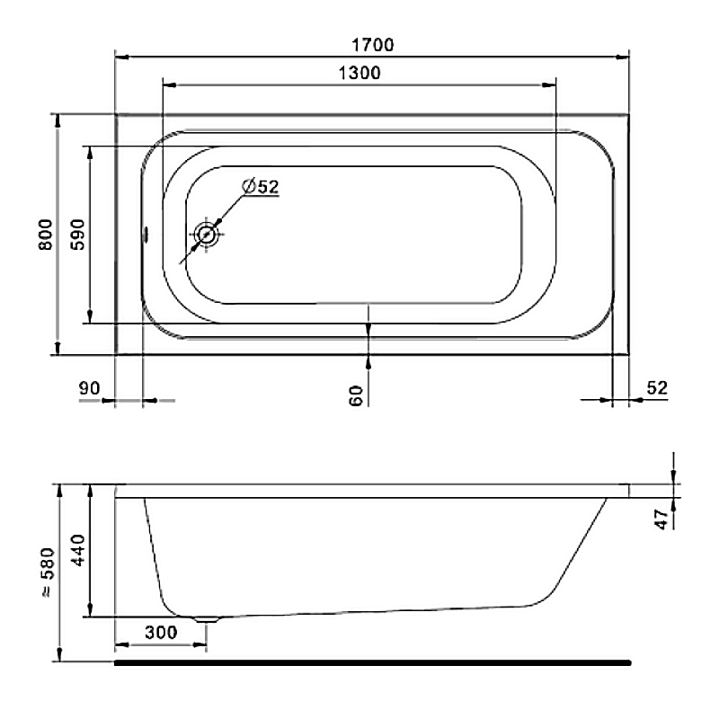 Форма ванны Прямоугольная