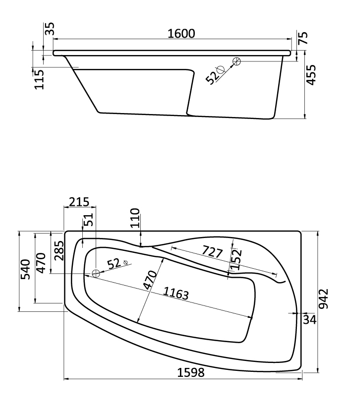 Форма ванны Угловая