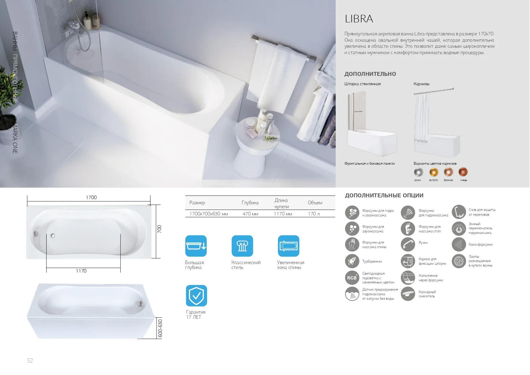 Ванна Marka One Libra, 170х70, 01ли1770