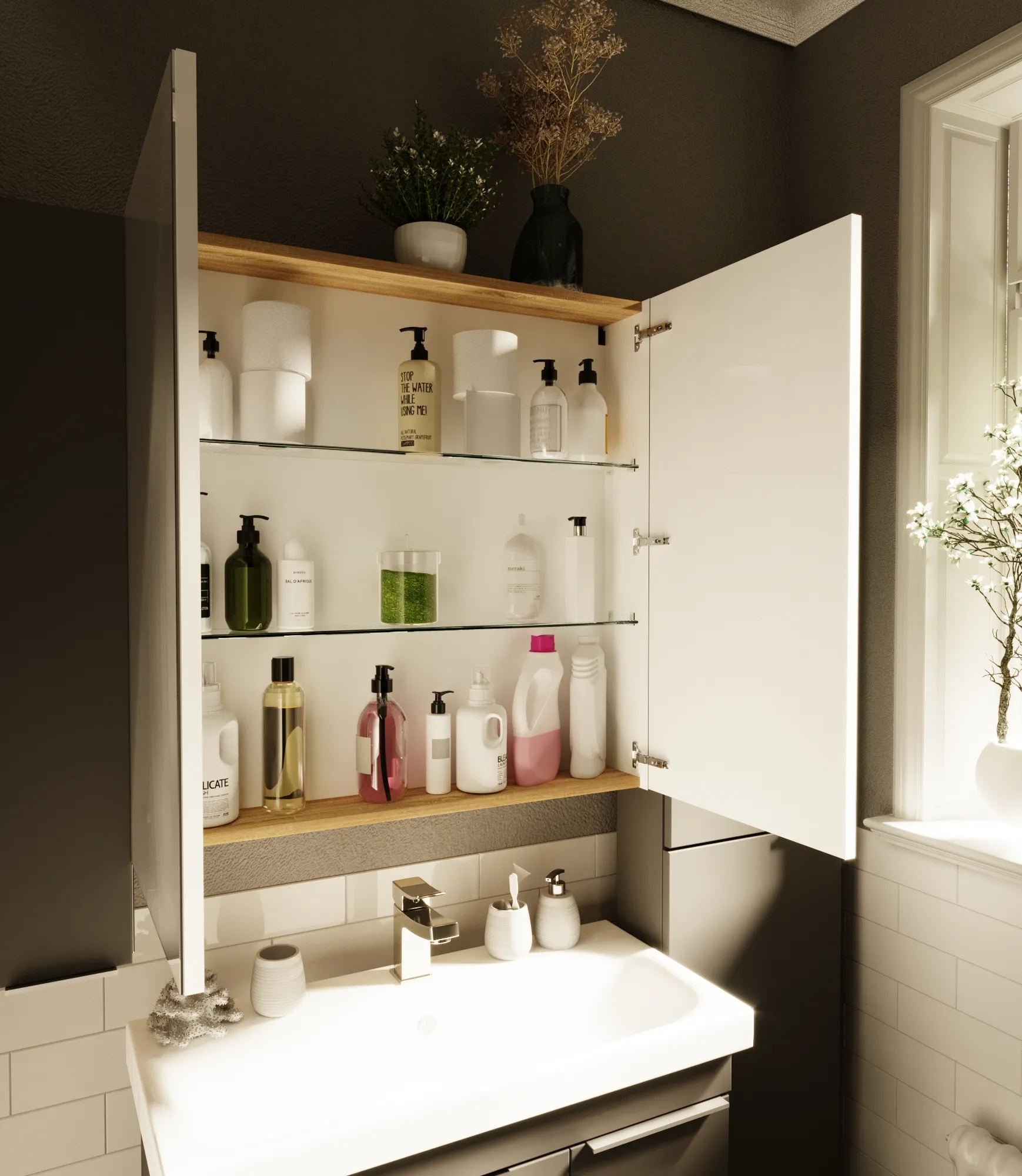 Двустворчатый зеркальный шкаф с лаконичным и одновременно эффектным дизайном создан для ванных комнат в любой стилистике. Он найдет свое место как в классическом пространстве, так в современной или эклектичной ванной комнате. Использование качественной фурнитуры обеспечивает плавную работу дверец и отсутствие посторонних шумов. Вместительные внутренние полки позволяют удобно организовать хранение косметики и личных принадлежностей, а лаконичность и минимализм внешнего вида шкафа соответствуют всем актуальным тенденциям в дизайне мебели и аксессуаров для ванной комнаты.