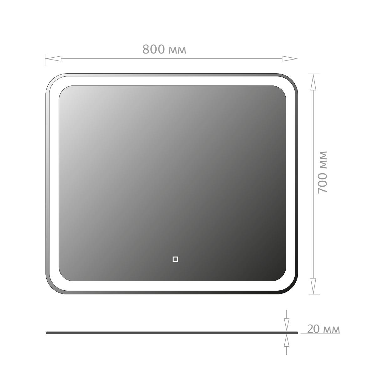 Яркость LED-подсветки регулируется при помощи встроенного диммера и сенсорной кнопки на поверхности зеркала.