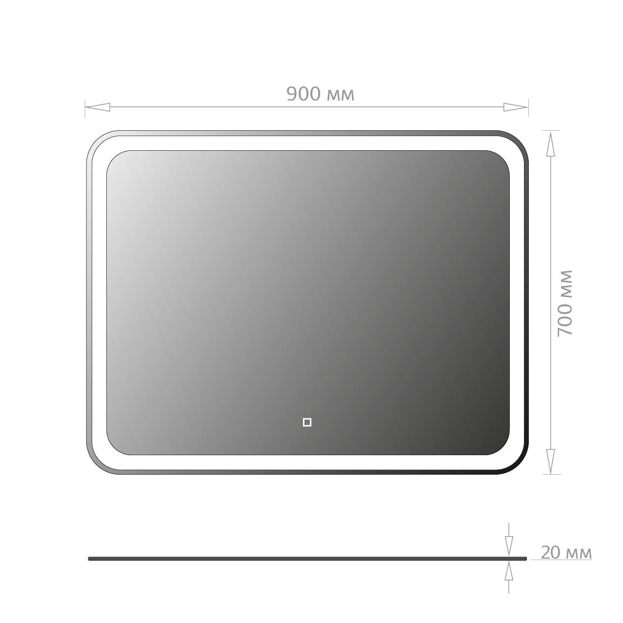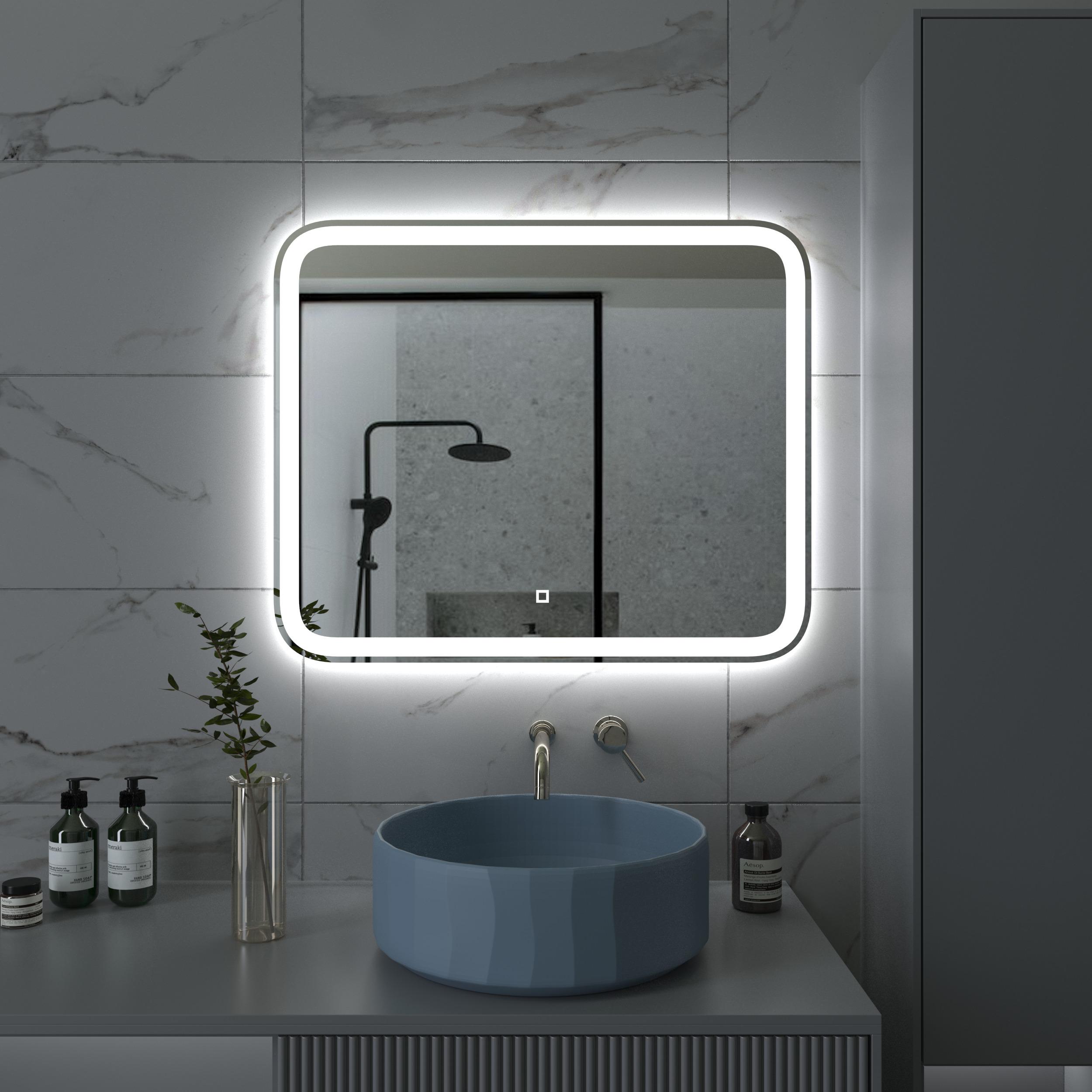 Яркость LED-подсветки регулируется при помощи встроенного диммера и сенсорной кнопки на поверхности зеркала.